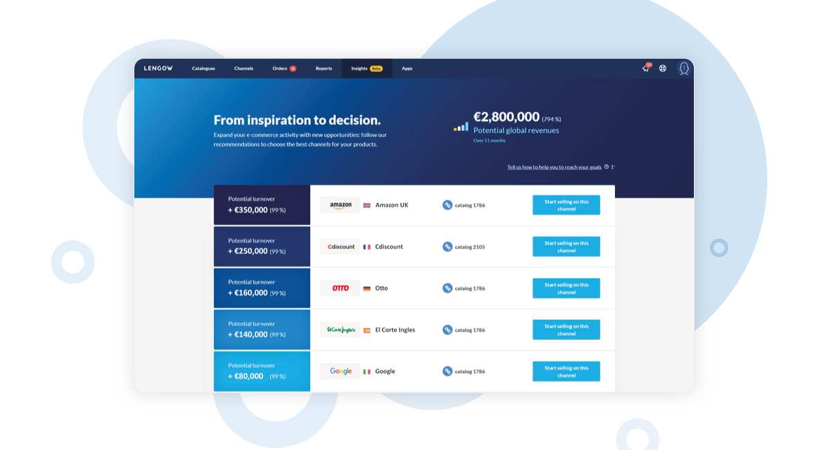 • Algoritmo Lengow para detectar los canales más adecuados y las cifras de negocio a esperar.